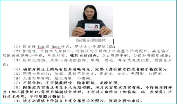 2.本人手持身份证正面照片,照片要求如下图: