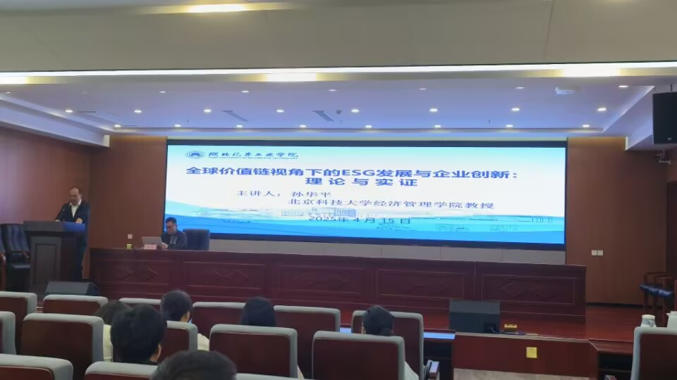 4月15日上午,北京科技大学经济管理学院孙华平教授应邀主讲湖北汽车工业学院东风讲坛,以“全球价值链视角下的ESG发展与企业创新:理论与实证”为题,为汽车商学院师生带来一场学术盛宴。讲座在产教楼3楼报告厅举行,由汽车商学院副院长鄢曹政主持,学院新进博士、青年教师和全体研究生参加讲座。